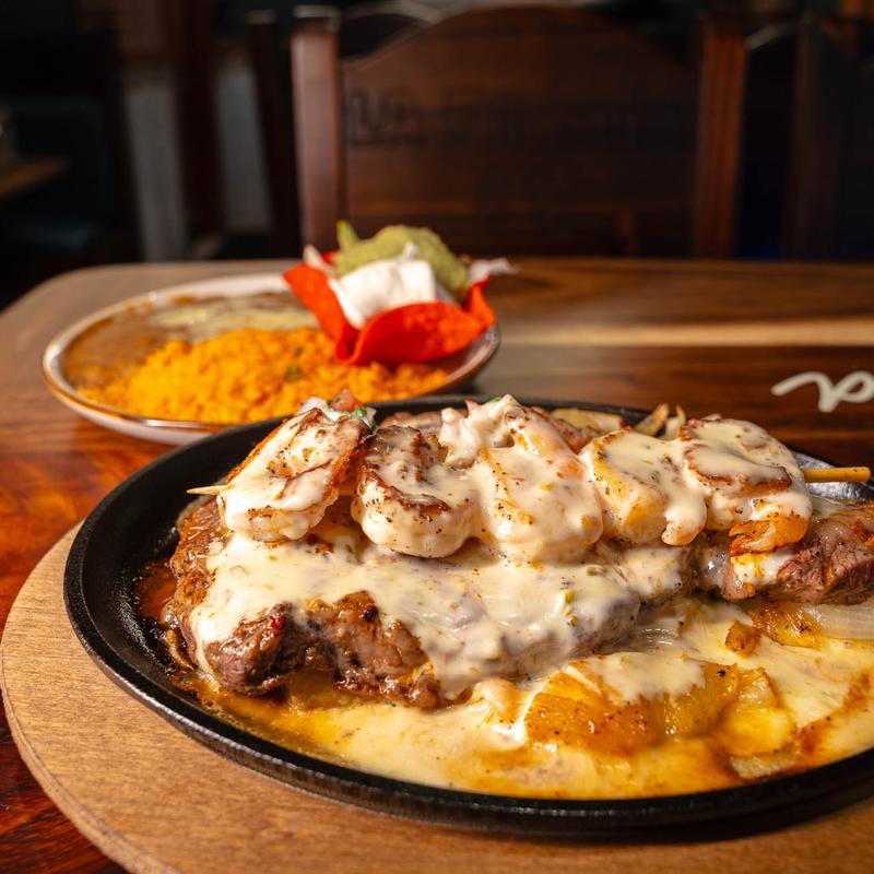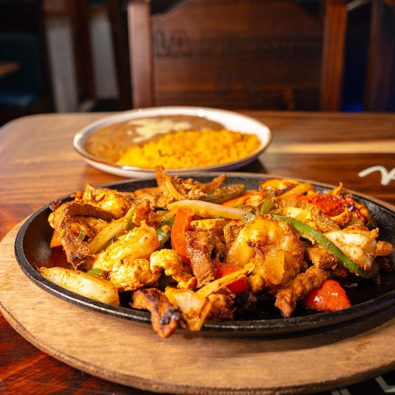 The aroma is irresistible as the dish arrives at your table. All taco meals include three tacos, rice and beans, onions, cilantro, avocado sauce, and homemade hot sauce (except for Baja Tacos). All fajitas are prepared with onions and bell peppers, served with rice, beans, a house salad, and your choice of flour or corn tortillas.